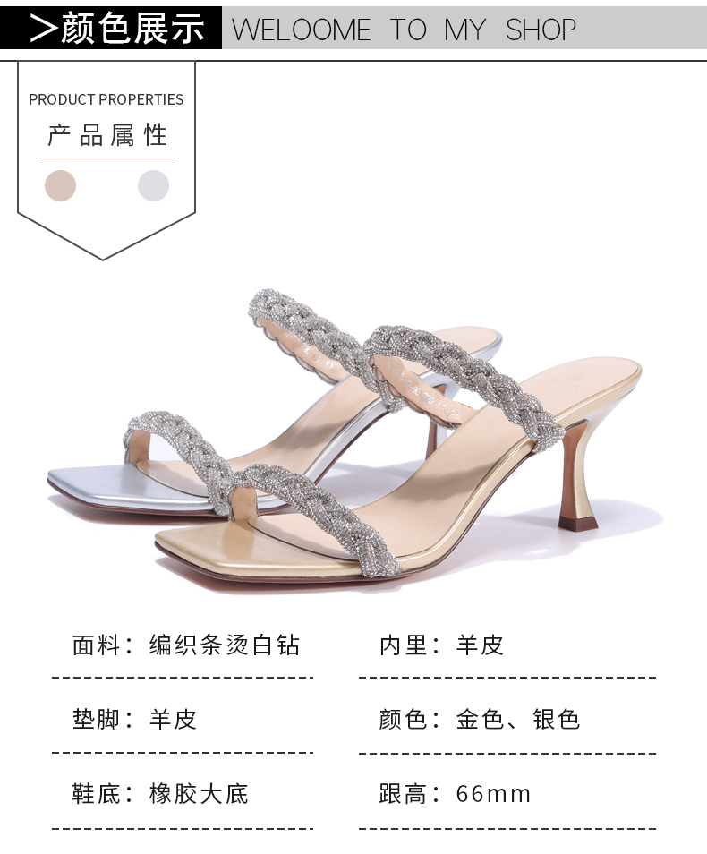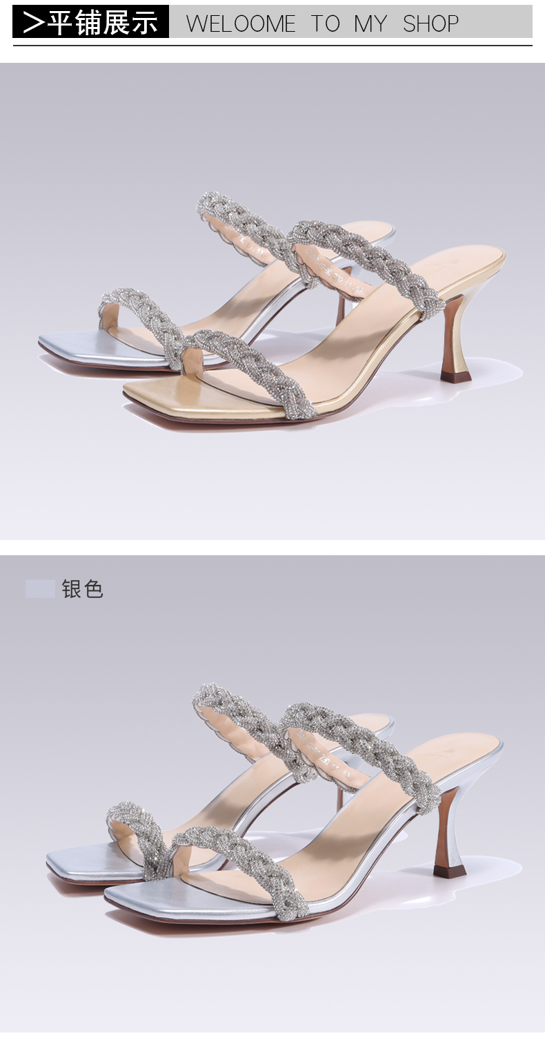 2022年夏季新款一字帶方頭高跟涼鞋女鞋22B200B-02